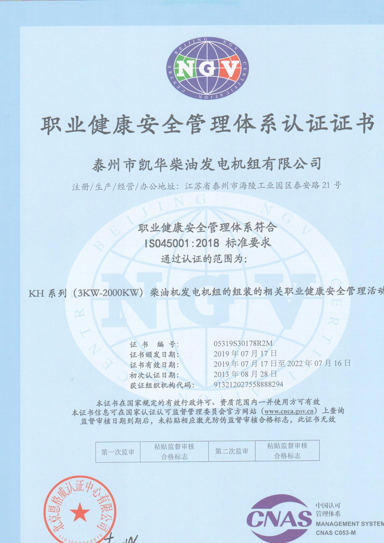 發(fā)電機(jī)組廠家凱華公司已先后通過(guò)ISO9001質(zhì)量認(rèn)證、泰爾認(rèn)證、ISO14001-2001環(huán)境管理體系認(rèn)證、GB/T28001-2001職業(yè)健康安全管理體系認(rèn)證,歐盟CE認(rèn)證、SGS認(rèn)證等。